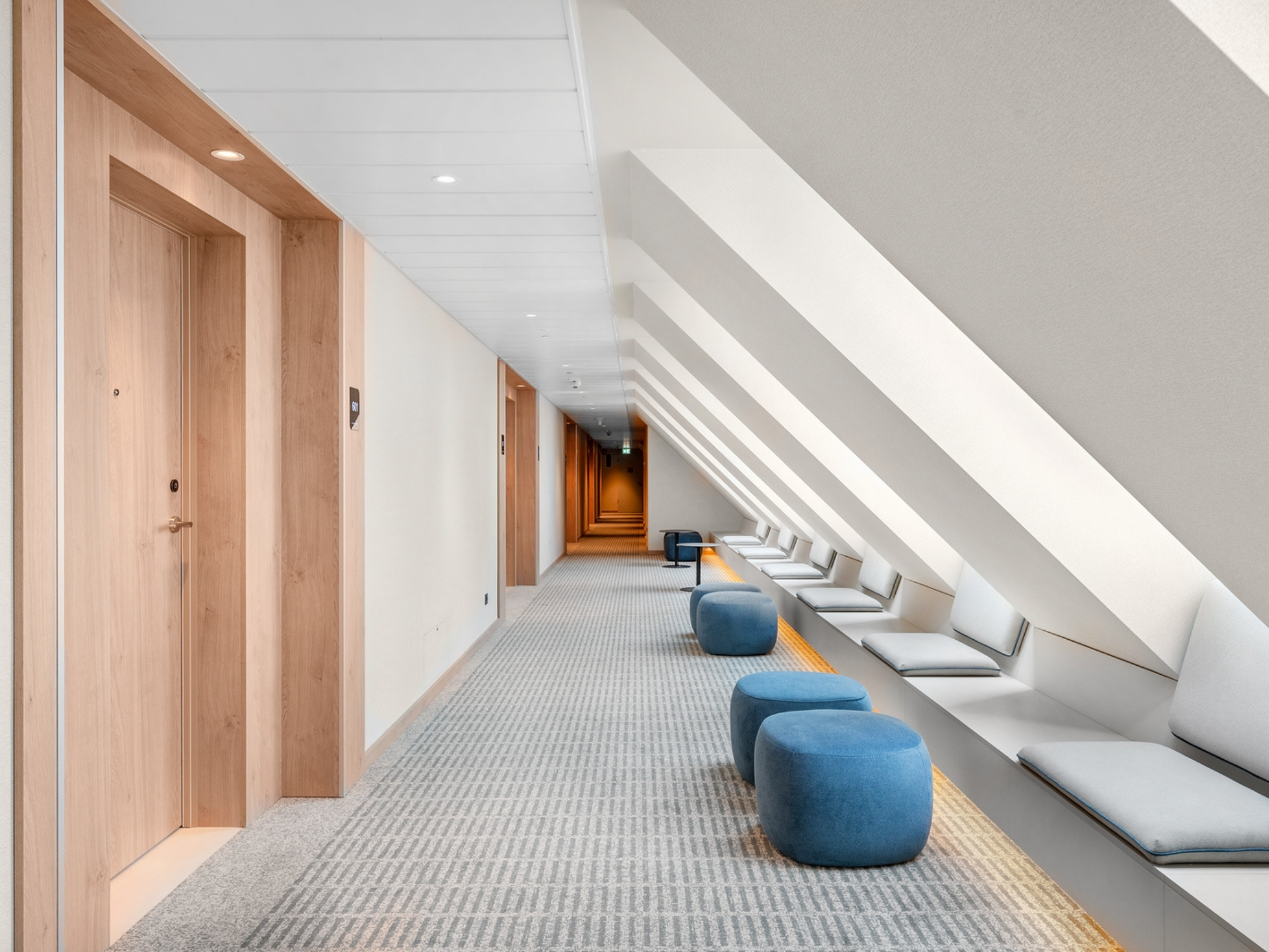 A Hilton Garden Inn 101 vendégszobával, rendezvény- és konferenciateremmel, wellness részleggel és panorámás Skybar-ral várja a vendégeket. A visszafogott, monokróm színhasználatú homlokzat tiszteletben tartja a környező épületek arányait és ritmusát, miközben egyértelműen kortárs identitást mutat.